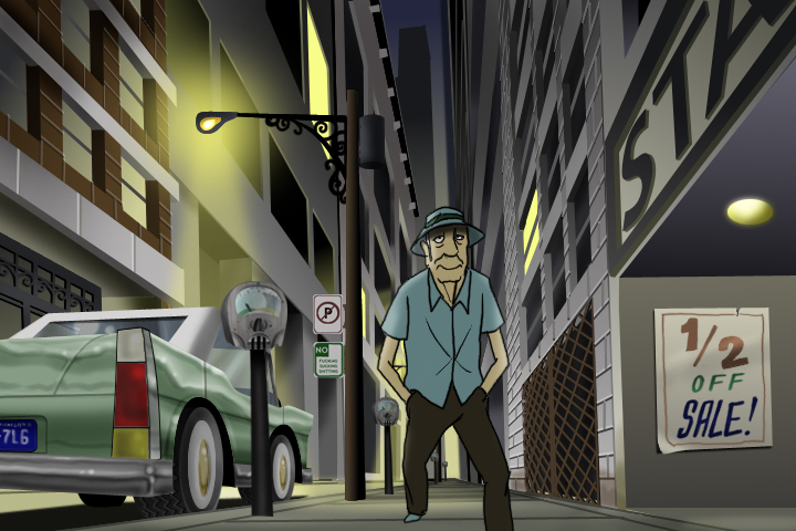 Token Life, is an observation of how society has reduced all human interaction into mere tokens. By today’s standards, the technology of “tokens” seems primative compared to the palm pilots, cell phones, and ID cards consumed by modern society, but nonetheless illustrates our lost touch of human interaction. The story centers around a figure lost in his world of tokens. All his needs are met by simply dropping a coin into a slot. His alienation and disparity are relfected through the neon signs, blinking lights, and empty windows. In a way his coins are like pills which leads to addiction to gambling, sex, and caffeine. The story ends in a unique twist with redemption and suprise.The design of Token Life was influence by painters Edward Hopper, and Richard Estes.The score was composed by Eddie Sams.