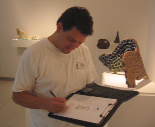 1st year students are given "boot" camp into the ins and outs of Maya or 3D graphics. I want them to learn it at a real world platform...meaning it's better to reference from real life instead of just turning on the computer and pressing a bunch of buttons. During this semester we had the real fortune of experiencing a gallery exhibit of Ceramic Artist Val Cushing from Alfred University in upstate New York. Val's ceramic pieces conjured up some great character possibilities, but also shed insight to wonderful textures, lighting, volume and shape. So off my students went with photos and sketch books. We explored Val's work and went back to the computer lab to extract some new pieces of our own. Afterwards, I wanted the students to tell a story from these peices. I stress that film making needs to be introduced at the entry level. Students must be comfortable with editing and timing before they proceed at the higher level of animation and film making.